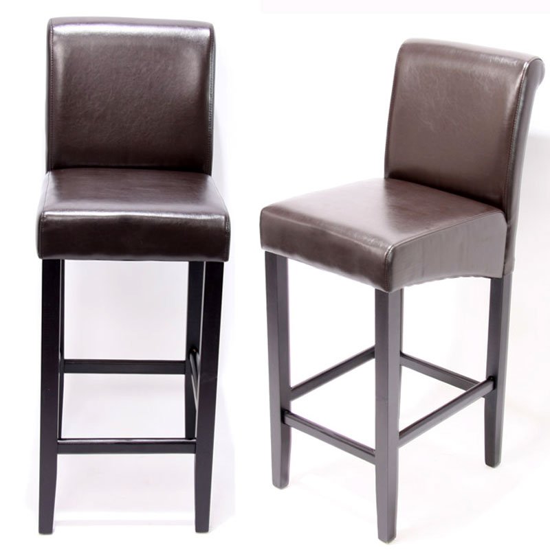 Lotto da 2 Sgabelli di Design LANCY, Struttura e Gambe in Legno Massiccio, in Vera Pelle Marrone