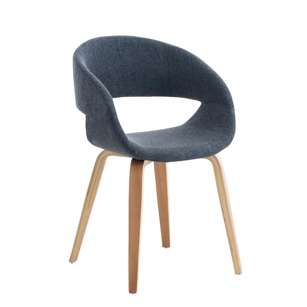 Lotto da 4 Sedie per Salotto GREGORY, in Tessuto Blu, Base in Legno Massiccio color Faggio